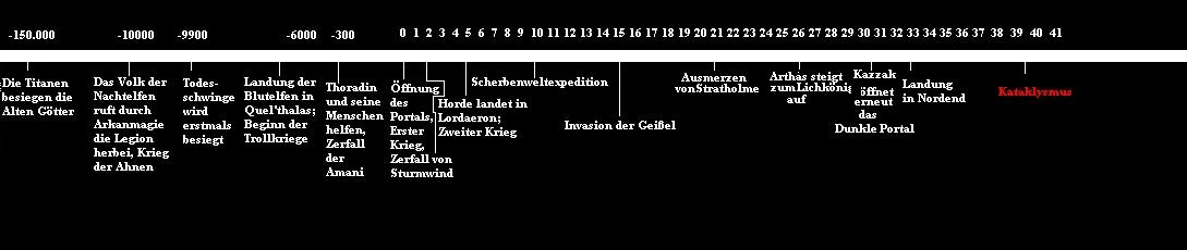 Was die Zeitrechnung anbetrifft, kannst du hier http://wow.ingame.de/wiki/Zeitlinie nachschauen oder