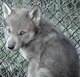 Besonderheiten: Simiran hat leuchtend bernsteinfarbene Augen, die für einen so jungen Wolf ungewöhnlich sind. Außerdem hat er eine lange (noch frische, aber gut verheilte) Narbe auf der rechten Seite.