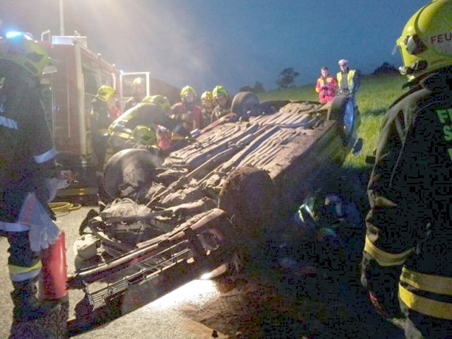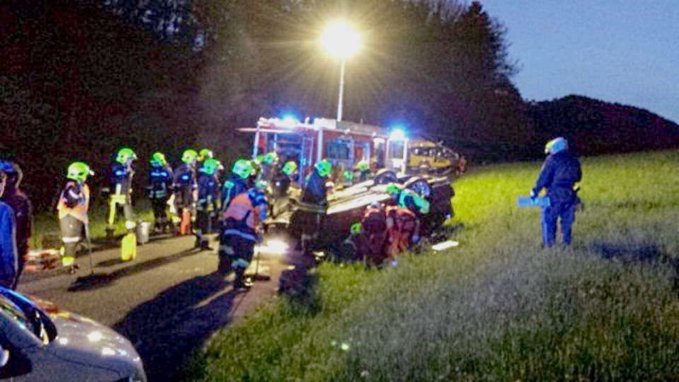 Danach längs nach vorne überschlagen und am Dach liegengeblieben.