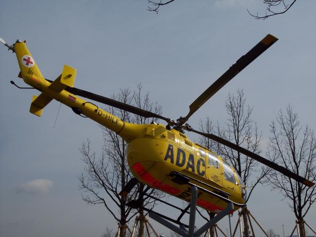 Dies war der erste Rettungshubschrauber in Bayern, der bereits in den 1960er Jahren geflogen ist. Jetzt wird er hier am Besucherpark ausgestellt.