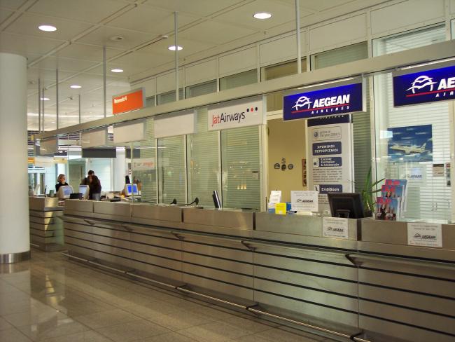Die Schalter gehören zu verschiedenen Fluggesellschaften.