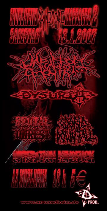 Wir veranstalten am kommenden Samstag das zweite Mülheim Grindcore Massacre und haben ein Problem - Unser Headliner WAR FROM A HARLOTS MOUTH ist kurzfristig aus gesundheitl. Gründen abgesprungen. Hättet ihr Lust einzuspringen?