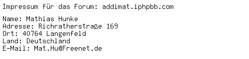 - Sie gestatten dem Betreiber darüber hinaus, Ihre Beiträge abzuändern, sofern sie gegen o. g. Regeln verstoßen oder geeignet sind, dem Betreiber oder einem Dritten Schaden zuzufügen.